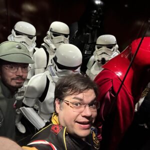 Brad is an avid cosplayer and started with the Legion in 2021 as Count Dooku and later Darth Vader. He also cosplays as Gandalf the White, The Witch King, Mr. Fantastic, and others too. He was born and raised in the Pittsburgh area and is married with two sons, one of which is also in the 501st. He also is a practicing 5th degree master blast belt in Tang Soo Do karate.